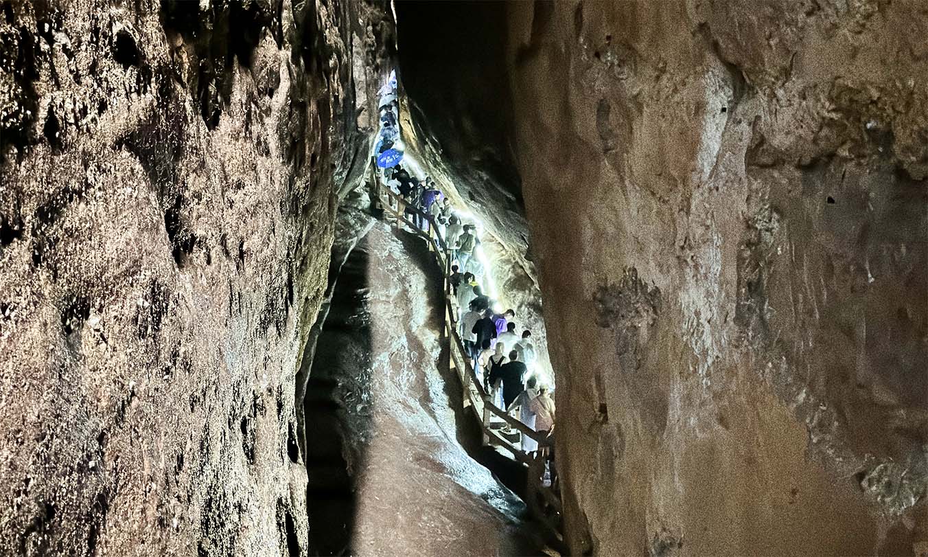 雙崖壁立千仞,最窄處僅30厘米,大家側(cè)身“貼壁而行”,在驚呼與笑聲中極限挑戰(zhàn)地質(zhì)奇觀一線天。