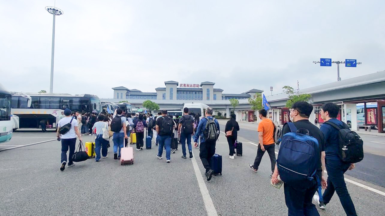清晨,伙伴們齊聚合肥南站,帶著雀躍的心情踏上高鐵。窗外的風(fēng)景由城市高樓漸變?yōu)閷訋n疊翠,短短三小時(shí)的車(chē)程后,“碧水丹山”武夷山已映入眼簾。